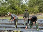 Barito Selatan – TNI Manunggal Membangun Desa (TMMD) ke-124, yanb melaksanakan program ketahanan pangan, telah masuk tahapan penanaman bibit sayur, Bertempat di