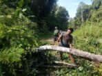Bersihkan Rute Jalan, Satgas TMMD Bersama Warga Bersihkan Pohon Yang Halangi Jalan