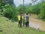ACEH BARAT – Debit air sungai di Desa Alue Bili meningkat akibat curah hujan yang tinggi dalam beberapa hari terakhir. Babinsa Ramil