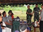 MERAUKE – Komandan Koramil (Danramil) 1707-02/Merauke Kodim 1707/Merauke Mayor Inf La Haruni bersama Kapolsek Kurik Iptu Elvis L. Papialy, S.Sos dan puluhan