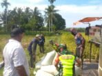 ACEH BARAT — Babinsa Koramil 08 Arongan Lambalek Kodim 0105/Aceh Barat, Sertu Agus S dan Sertu Maryanto, turun langsung ke sawah membantu