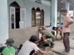 NTB-Dompu. Wujud kebersamaan dan meningkatkan kerja sama di wilayah binaan, Babinsa Desa malaju Sertu Mastudinur Koramil 1614-04/Kilo Kodim 1614/Dompu, membantu membangun Pondasi