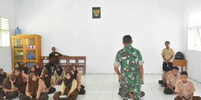 Babinsa Koramil 07 Johan Pahlawan Ajarkan Kedisiplinan dan Kebersihan kepada Siswa MTSN 11-Aceh Barat