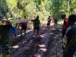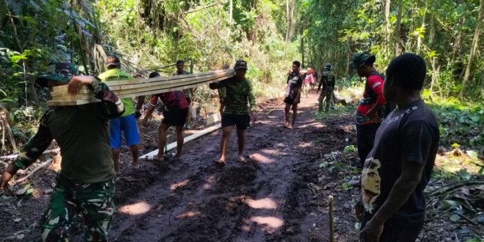 ACEH BARAT – Babinsa Koramil 03 Kaway XVI Kodim 0105 Abar Serda Darma membantu warga buat cetakan mal papan cor atau bekisting