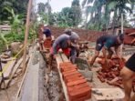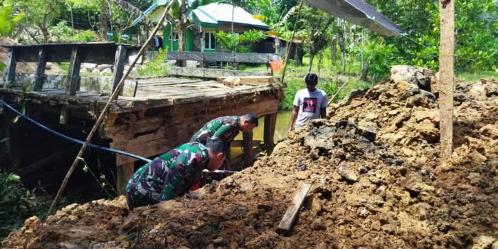 ACEH BARAT – Babinsa Koramil 03 Kaway XVI Kodim 0105 Abar Serda Darma membantu warga buat cetakan mal papan cor atau bekisting