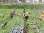 Bangli – Babinsa Koramil 1626-04/Kintamani, Pelda I Wayan Renes melaksanakan Komunikasi Sosial (Komsos) dengan salah satu petani bawang di ladang ketut pole,