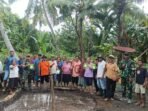 SINJAI. Babinsa Desa Barambang Koramil 1424-06/Sinjai Borong Kodim 1424/Sinjai, Serka Syamsuddin bersama masyarakat setempat menggelar kegiatan gotong royong dengan membantu pengecoran Pondasi