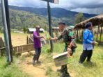 LANNY JAYA – Prajurit Satgas Pamtas RI-PNG Kewilayahan Yonif 614/RJP Pos Balingga membagikan makanan berupa super mie dan jajanan kepada masyarakat Papua