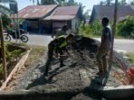 ACEH BARAT – Babinsa Koramil 03 Kaway XVI Kodim 0105 Abar Serda Darma membantu warga timbun jalan akses kerumah warga di Desa