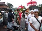 Klungkung,- Pjs Danramil 1610-01/Klungkung Lettu Inf Nyoman Surata melaksanakan apel pengecekan personel pengamanan Karya Memungkah Mepedudusan Agung Nubung Pedagingan Pura Sakti Peling