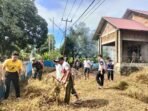 Babinsa Maros dan Staf Desa Purnakarya Gotong Royong Bersihkan Kantor Desa