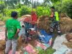 Babinsa Koramil 08/Arongan Lambalek Bantu Petani Merontokkan Padi di Desa Cot Buloh