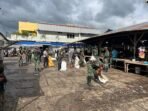 NTT-ALOR – Kodim 1622/Alor bersama warga masyarakat Kelurahan Nusa Kenari melaksanakan Karya bakti pembersihan sampah, di Pasar Rakyat Lipa, Kelurahan Nusa Kenari,