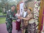 Klungkung,- Babinsa Kamasan bersama Bhabinkamtibmas dan staf desa menghadiri kegiatan resepsi pernikahan pernikahan putri dari Kaur Pelayanan Desa Kamasan Ibu Dayu Nyoman