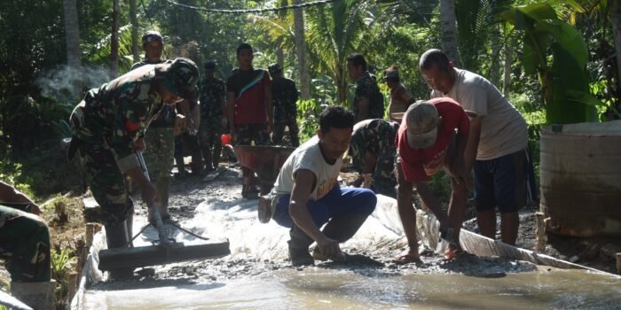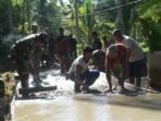 TAKALAR – Musim hujan tiba, untuk mencegah terjadinya luapan air di jalan, Personel Koramil 1426-03/Galut jajaran Kodim 1426/Takalar, bersama warga masyarakat melaksanakan