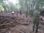 HULU SUNGAI UTARA – Personil Koramil 1001-06/Amuntai Utara bersama anggota Polsek Amuntai Utara dan Aparat Desa Pimping ditambah warga sekitar gotong royong