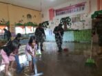 Pastikan Belajar Mengajar Tetap Berjalan, Personel Koramil 1608-07/Monta Kerja Bakti Bersihkan Sekolah