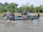 Babinsa Koramil Baras Bantu Warga Pasangkayu Menyeberangkan Kendaraan di Dapurang