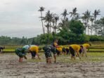 Semangat Swasembada Pangan, Koramil Banjarangkan Turun Sawah Tanam Padi Bersama