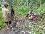 Klungkung,- Babinsa Besan Koptu Ketut Alit Duarsana bersinergi bersama Bhabinkamtibmas, Kadus dan warga melaksanakan gotong royong pembersihan dan evakuasi puing-puing tanah longsor