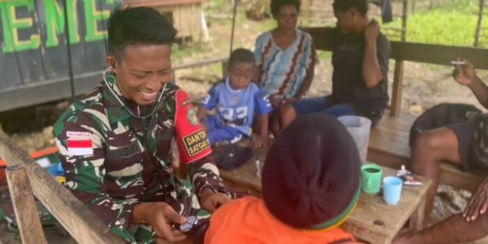 Satgas Pamtas Mobile RI-PNG Yonif 503/Mayangkara memberikan alat – alat menggambar secara gratis di Pos Batas Batu, Distrik Krepkuri, Kabupaten Nduga Papua.