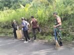 Babinsa Bersama Pemdes Apuan Gotong Royong Perbaiki Jalan Rusak