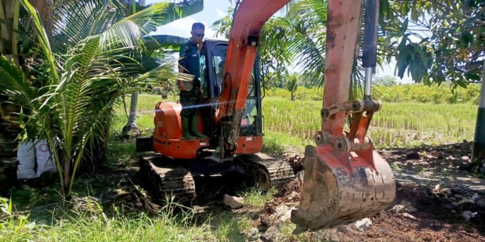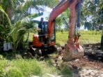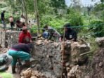 Enrekang – Babinsa Koramil 1419-04/Alla, Sertu Rusli, melaksanakan pemantauan wilayah sekaligus bergotong royong dengan warga dalam rangka melanjutkan perbaikan drainase yang jebol