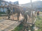 Aceh Jaya – Dalam rangka meningkatkan kekompakan dan menjalin silaturahmi, Babinsa Koramil 0114-05/Panga Serda M Ambri bersama warga bergotong royong membantu meratakan
