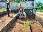 Bersama Warga, Babinsa Semarapura Kauh Tanam Pohon Kamboja Diarea Pura Dalem Kaja