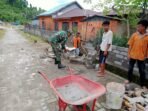 Tolitoli – Babinsa Koramil 1305-04/Dondo Serda M. David Afandi melaksanakan Binter membantu Bapak Imran Buhang memasang batako untuk Pagar Keliling Rumah, yang