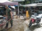 Ciptakan Lingkungan Bersih, Babinsa 1422/Maros Kerja Bakti Bersihkan Sampah Pasar