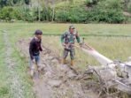 Kodim Poso, – Serma I. Christian P., anggota Koramil 1307-02/Pamona Puselemba, melaksanakan pendampingan dalam kegiatan pengolahan sawah milik Bapak Yules, yang terletak