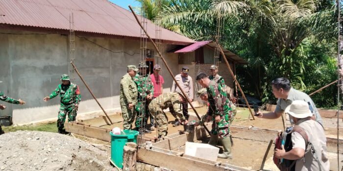 Tumbuhkan Jiwa Gotong Royong, Babinsa Bantu Pasang Cor Tiang Milik Rumah Warga Desa Binaan