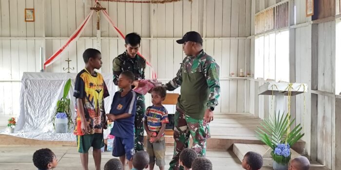 LANNY JAYA – Satgas Yonif 614/Raja Pandhita Pos Malagai dipimpin Wadanpos Letda Inf Alexander Lantang beserta anggota melaksanakan kegiatan anjangsana, dengan berkunjung