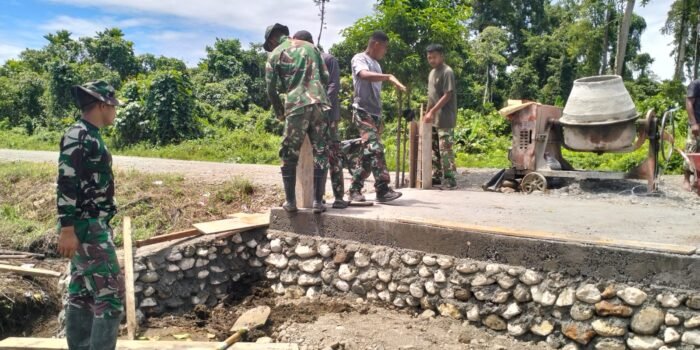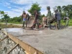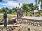 Tolitoli – Babinsa Koramil 1305-03/Damput Koptu Iswadi bersama masyarakat melaksanakan pengecoran jalan kantong produksi sepanjang 100 M, yang bertempat di Dusun Utara,