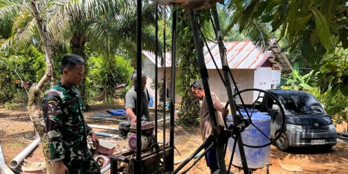 Babinsa Koramil 10 Damsel Bantu Petani Bajak Sawah Dengan Menggunakan Hand Traktor
