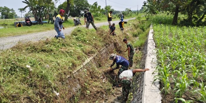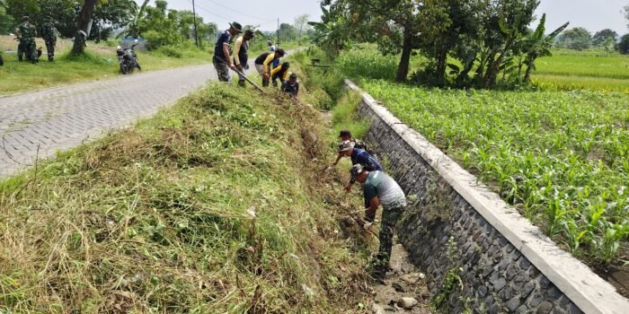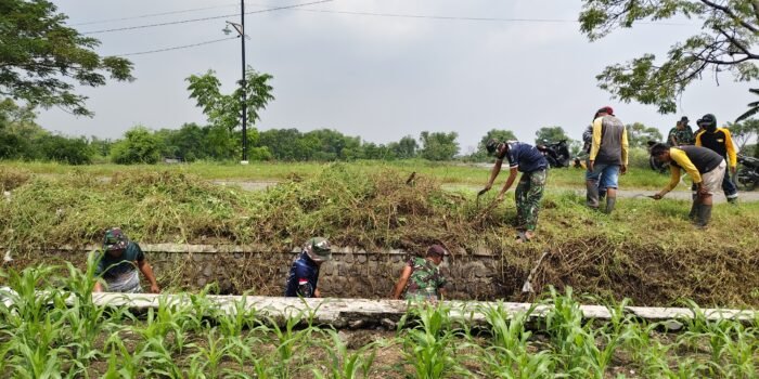 TAKALAR – Kolaborasi wujudkan kebersihan lingkungan dan mencegah terjadinya banjir pada saat musim hujan Personel Koramil 1426-05/Marbo Kodim 1426/Takalar, bersama masyarakat kerja