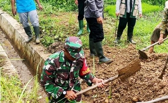 TAKALAR – Kolaborasi wujudkan kebersihan lingkungan dan mencegah terjadinya banjir pada saat musim hujan Personel Koramil 1426-05/Marbo Kodim 1426/Takalar, bersama masyarakat kerja