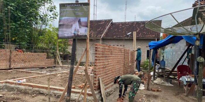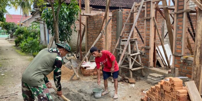 Berjiwa Sosial, Babinsa Bantu Mengaduk Semen Bangun Rumah Warga