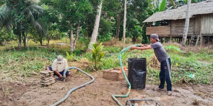 Babinsa Koramil 01 Baolan Bersama Masyarakat Bersihkan Saluran Air di Seputaran Lapangan Desa Salugan