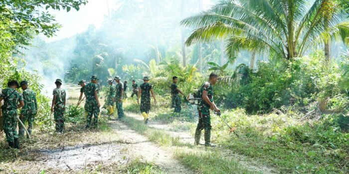 Lombok Timur — Babinsa Kelurahan Sekarteja, Sertu Mohammad Subuh Koramil 1615-01/Selong, bersama Ketua Lingkungan Mekarsari dan masyarakat setempat melaksanakan kegiatan gotong royong,