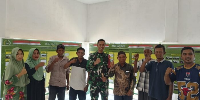 ACEH BARAT – Sertu Eko Saputra, sebagai Babinsa Koramil 07 Johan Pahlawan, Kodim 0105/Aceh Barat, melaksanakan kegiatan gotong royong bersama masyarakat di