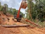 ACEH BARAT – Babinsa Koramil 10/Woyla Barat akofim 0105/Aceh Barat, Serda Ari Mulyadi bersama masyarakat melakukan gotong royong dalam pembanguan Masjid Darul