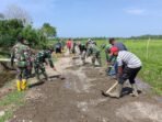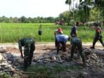 Lombok Timur — Babinsa Kelurahan Sekarteja, Sertu Mohammad Subuh Koramil 1615-01/Selong, bersama Ketua Lingkungan Mekarsari dan masyarakat setempat melaksanakan kegiatan gotong royong,