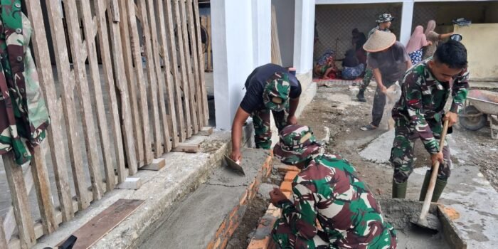TAKALAR – Kolaborasi wujudkan kebersihan lingkungan dan mencegah terjadinya banjir pada saat musim hujan Personel Koramil 1426-05/Marbo Kodim 1426/Takalar, bersama masyarakat kerja