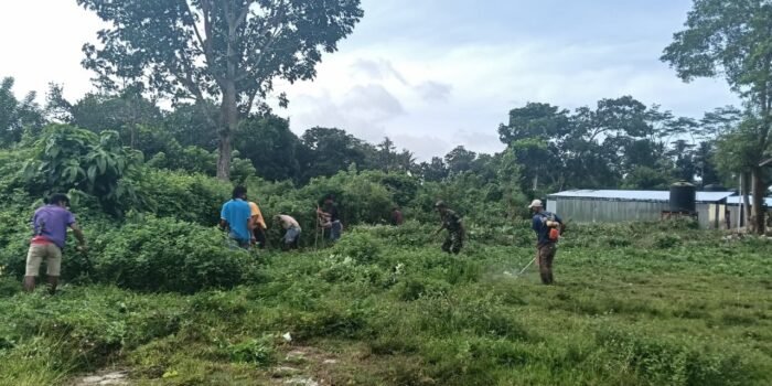 Lombok Timur — Babinsa Kelurahan Sekarteja, Sertu Mohammad Subuh Koramil 1615-01/Selong, bersama Ketua Lingkungan Mekarsari dan masyarakat setempat melaksanakan kegiatan gotong royong,