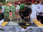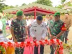 Aceh Jaya – Bintara Pembina Desa (Babinsa) Koramil 01/Jaya Kodim 0114/Aceh Jaya Koptu Aris Kartiko membantu Bapak Abdullah membuat pematang sawah di