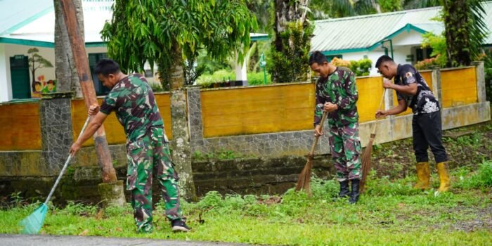 Manggarai Timur – Anggota Koramil 1612-04 Elar melaksanakan kegiatan Jumat Bersih di Pasar Pota, Kelurahan Pota, Kecamatan Sambi Rampas, Kabupaten Manggarai Timur