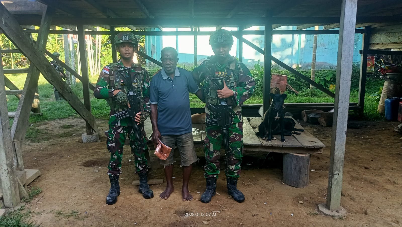 MEMBERAMO RAYA – Selain memberikan rasa aman bagi masyarakat perbatasan, Personel Pos Dabra Satgas Pamtas RI-PNG Kewilayahan Yonif 614/RJP juga peduli terhadap warganya dengan membagikan baju layak pakai kepada Bapak Kores Lery yang merupakan Tokoh Agama Kampung Dabra Dua, Distrik Memberamo Hulu, Kabupaten Memberamo Raya, Papua.