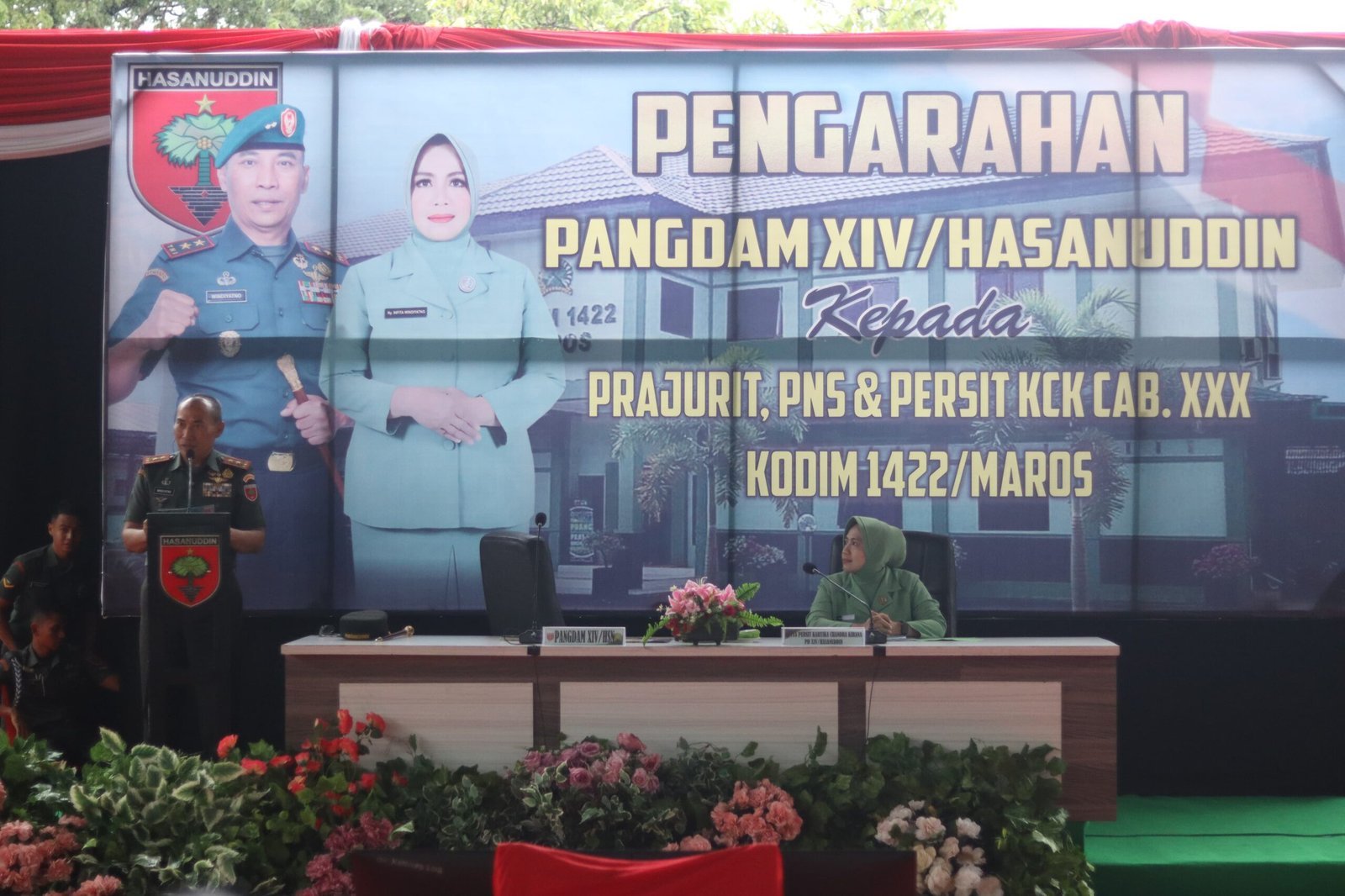 Dalam kunjungannya, Pangdam XIV/Hasanuddin menyampaikan pengarahan kepada seluruh prajurit TNI, PNS, dan Persit KCK. Dalam arahannya, Pangdam menekankan pentingnya menjaga keharmonisan keluarga serta mencintai dan menghargai pasangan hidup sebagai anugerah terbaik.